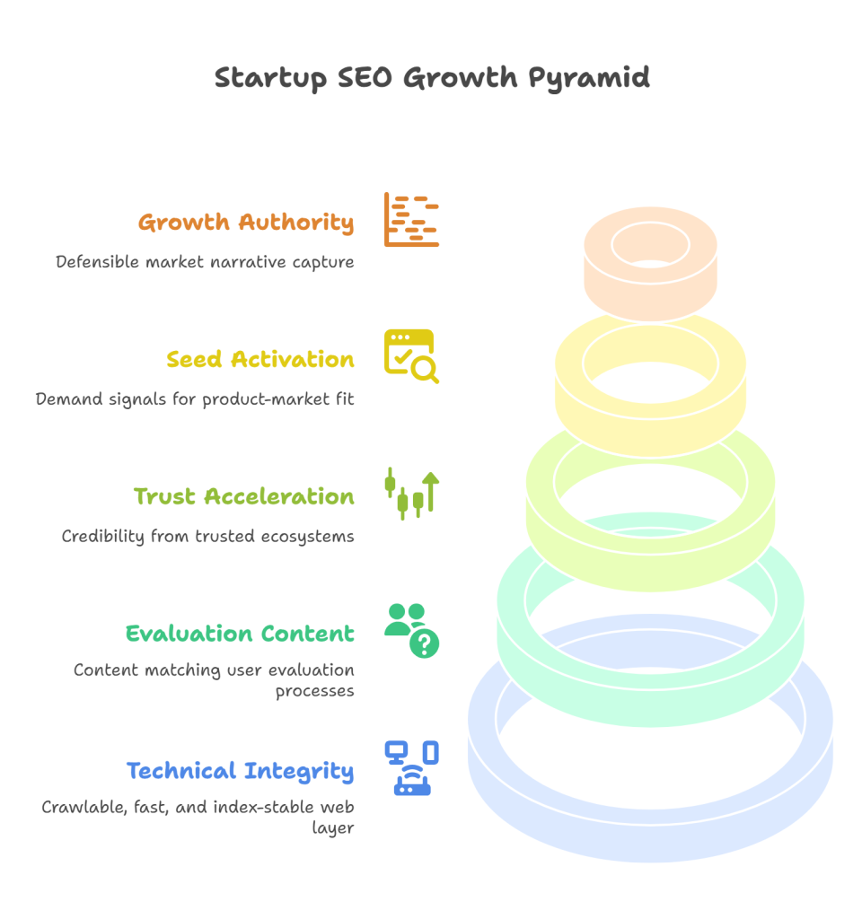 As funding and traction increase, the SEO strategy must shift from survival to defensibility. Startups that fail here often stagnate because they continue publishing narrow clusters without evolving into authority-level visibility.