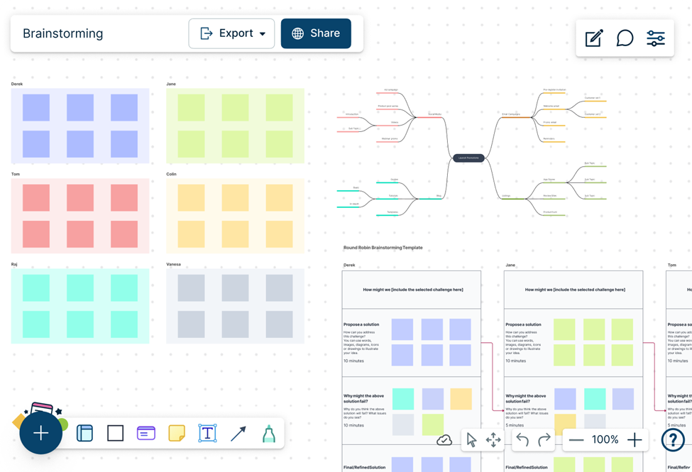 Once you’re in, you’ll find an infinite canvas that allows you and your team to brainstorm and collaborate in real-time. With multi-user editing and live collaboration, everyone can contribute simultaneously, eliminating the hassle of email chains and multiple document versions.