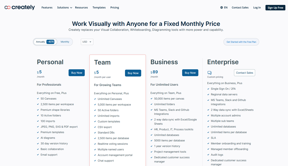 Now let’s talk numbers. Creately offers several pricing tiers to suit different needs: