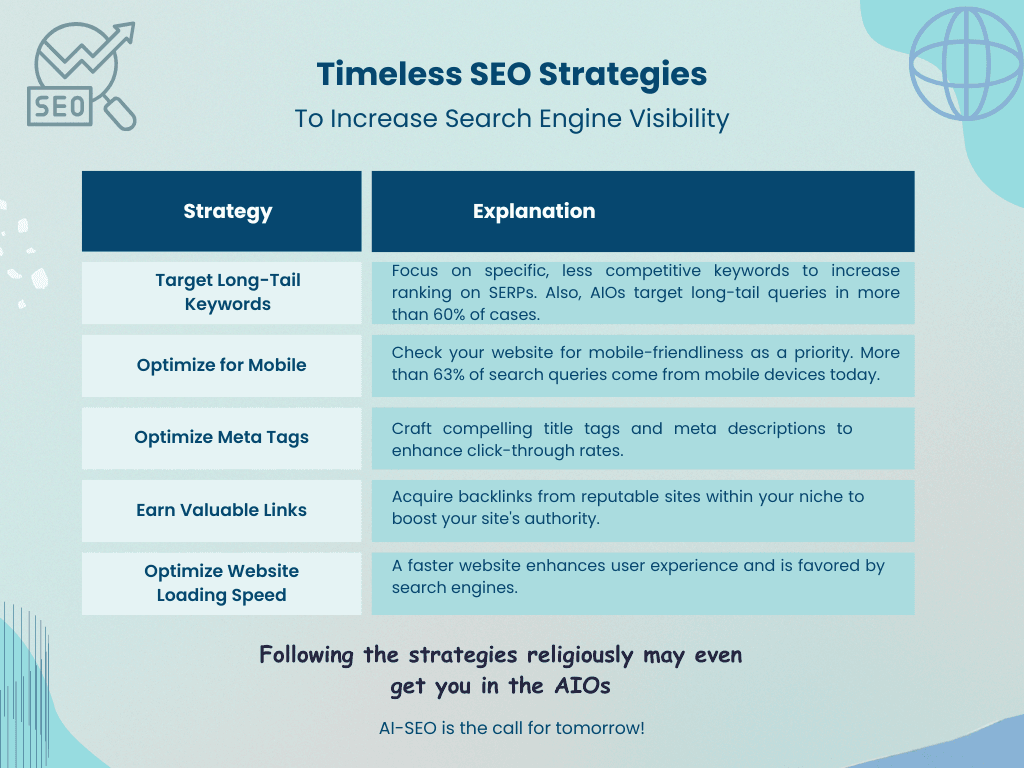Some of the timeless strategies to increase search engine visibility are effective even today. If you get them right, you walk one step ahead of your competitors in getting to the top 10 in SERPs.